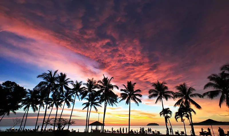 在丹绒亚路海滩欣赏世界排名第二的日落铺天盖地的火烧云,宛如海水般翻滚、涌动……